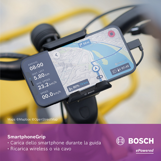 Lo SmartphoneGrip offre una funzione di ricarica completa durante la guida, con o senza cavo. La batteria rimane carica anche quando usi app ad alto consumo energetico. |