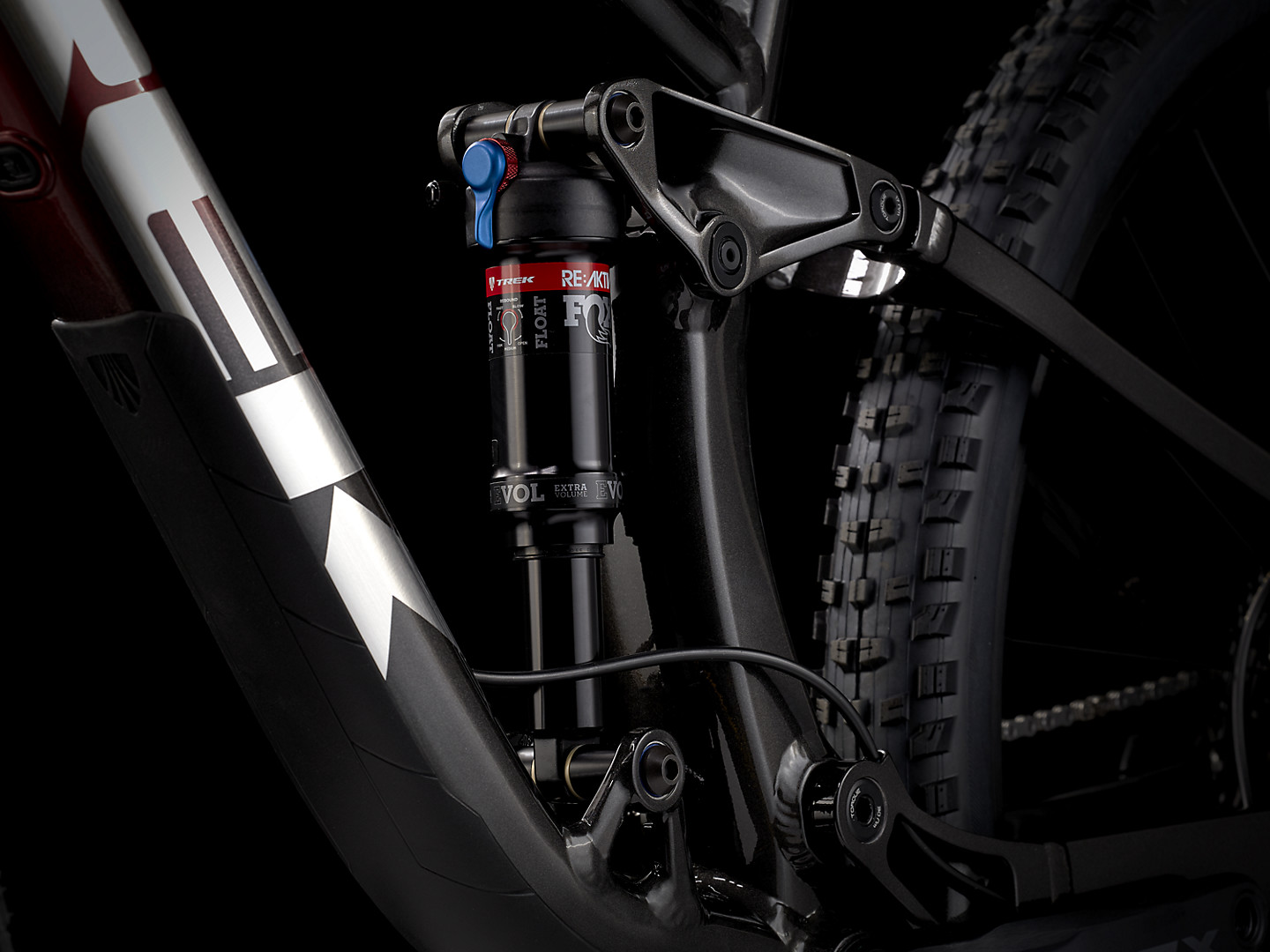 Telaio in lega, forcella FOX Rhythm 34 da 140mm e 130mm di escursione posteriore con smorzatore RE:aktiv ultraefficiente. Una trasmissione Shimano XT 1×12 con rapporto a 51 denti, potenti freni a 4 pistoncini, ruote Bontrager con mozzo Rapid Drive a 54 denti per un innesto rapido e reggisella telescopico Bontrager Line.